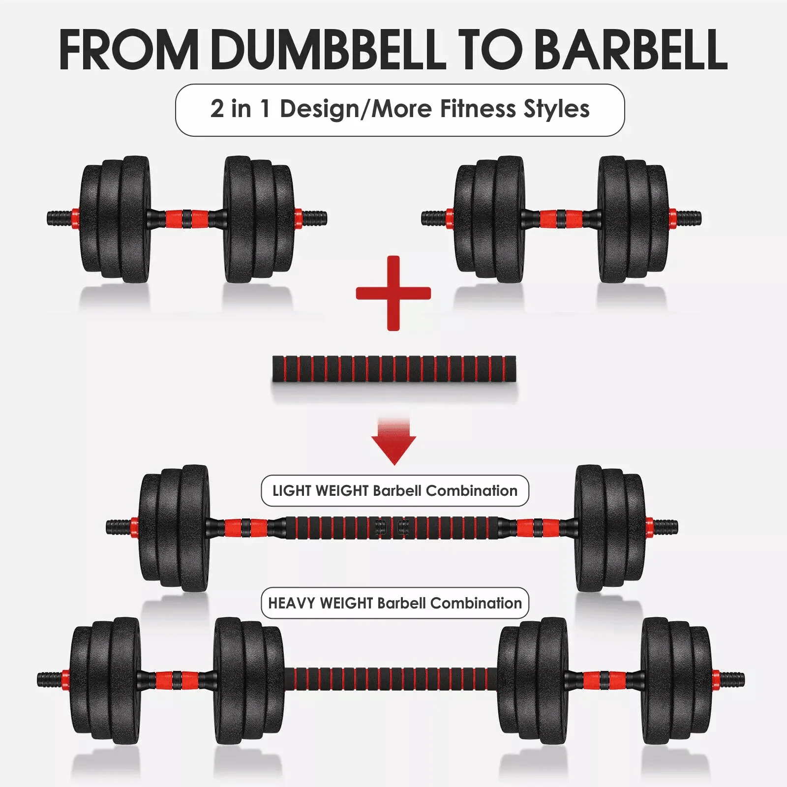 - 2-in-1 Dumbbell & barbell set can be used as dumbbell and barbell lifting. Use the connecting rod to link two sides of dumbbells together, or remove the rod to use as dumbbells.