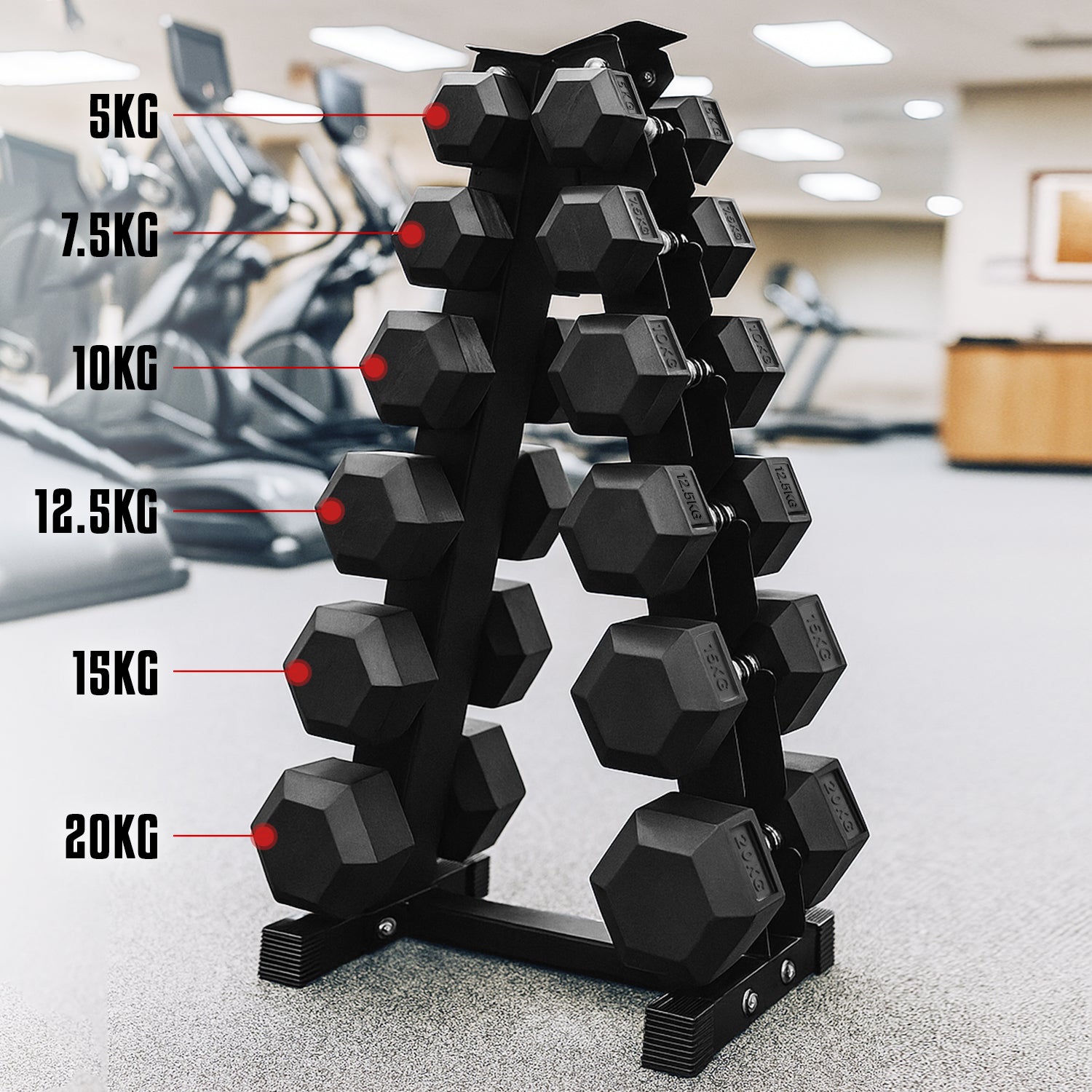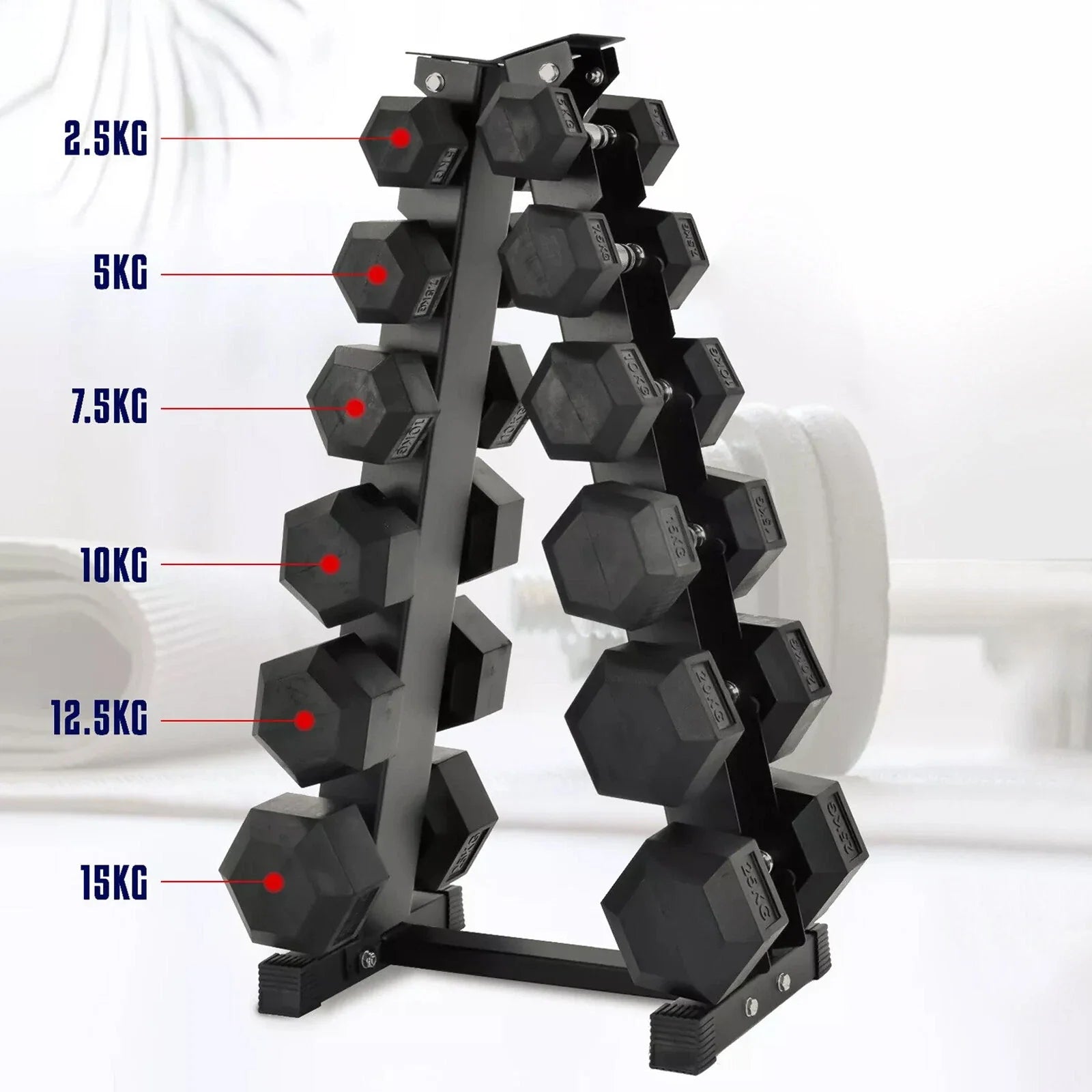 - Capacity: Holds 6 Pairs of Dumbbells