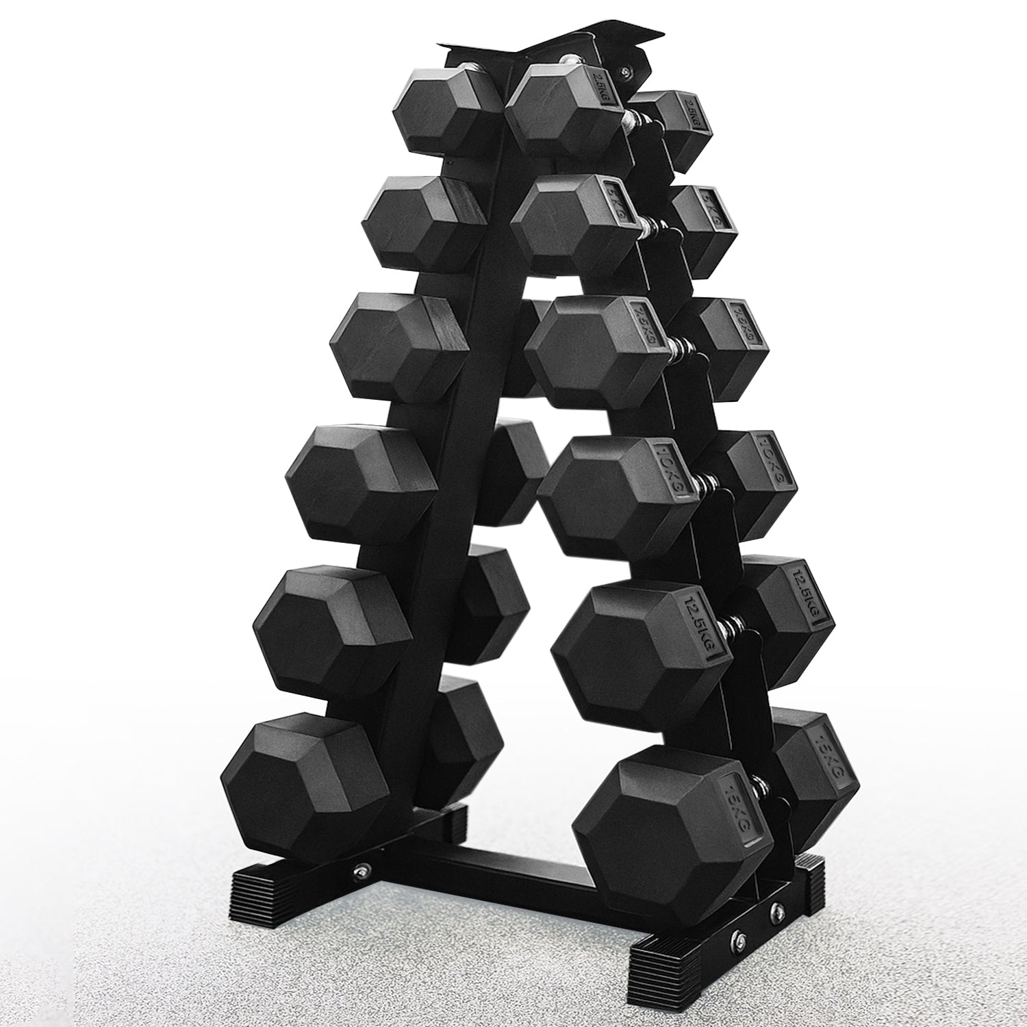 Complete 6 Tier Hex Dumbbells Set with Storage Stand