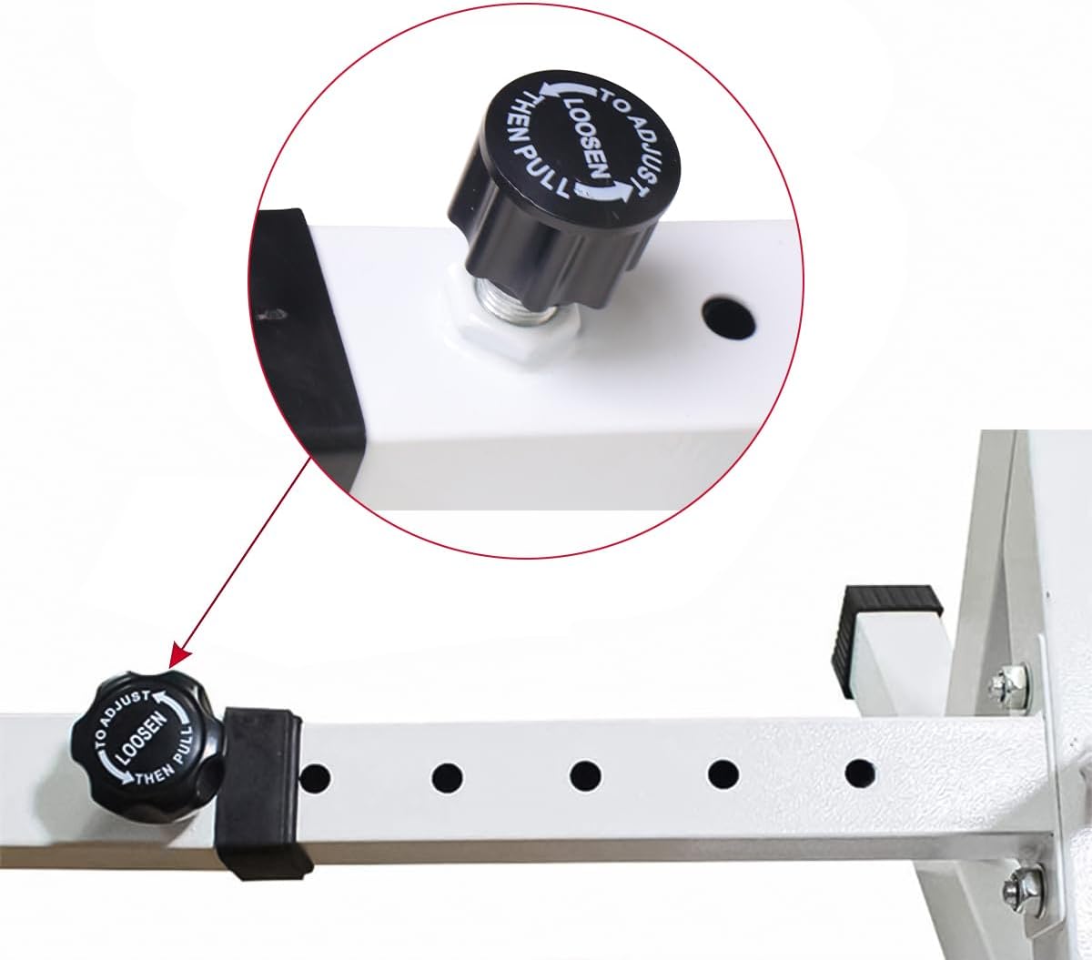 Easily adjustable to 12 height positions, allowing you to customize your setup for bench presses, squats, shoulder presses, and more.