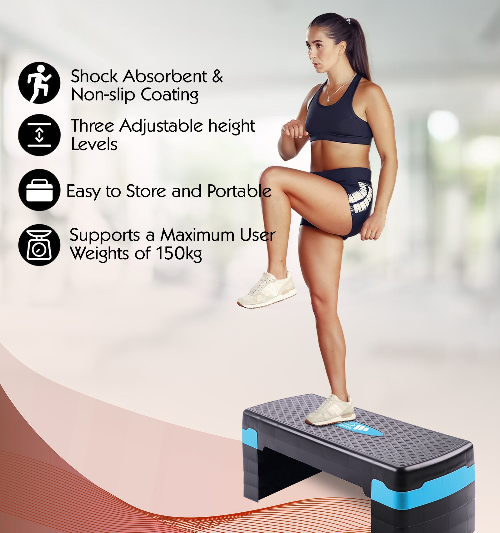 - Adjustable Elevation: Aerobic Stepper Blocks allow you to raise the step’s height to increase workout intensity, making it a versatile tool for strength-building and fat-burning routines.