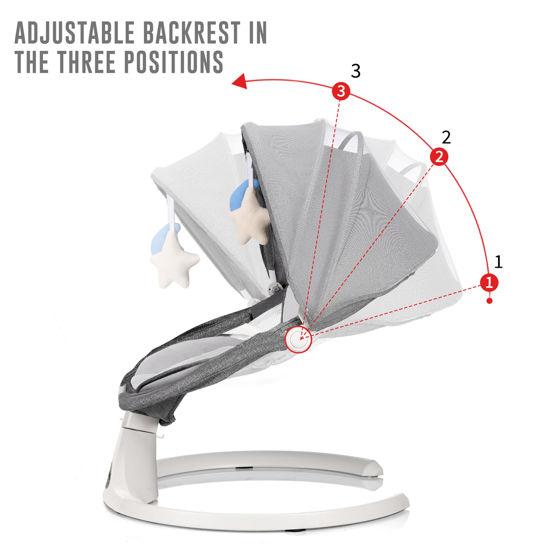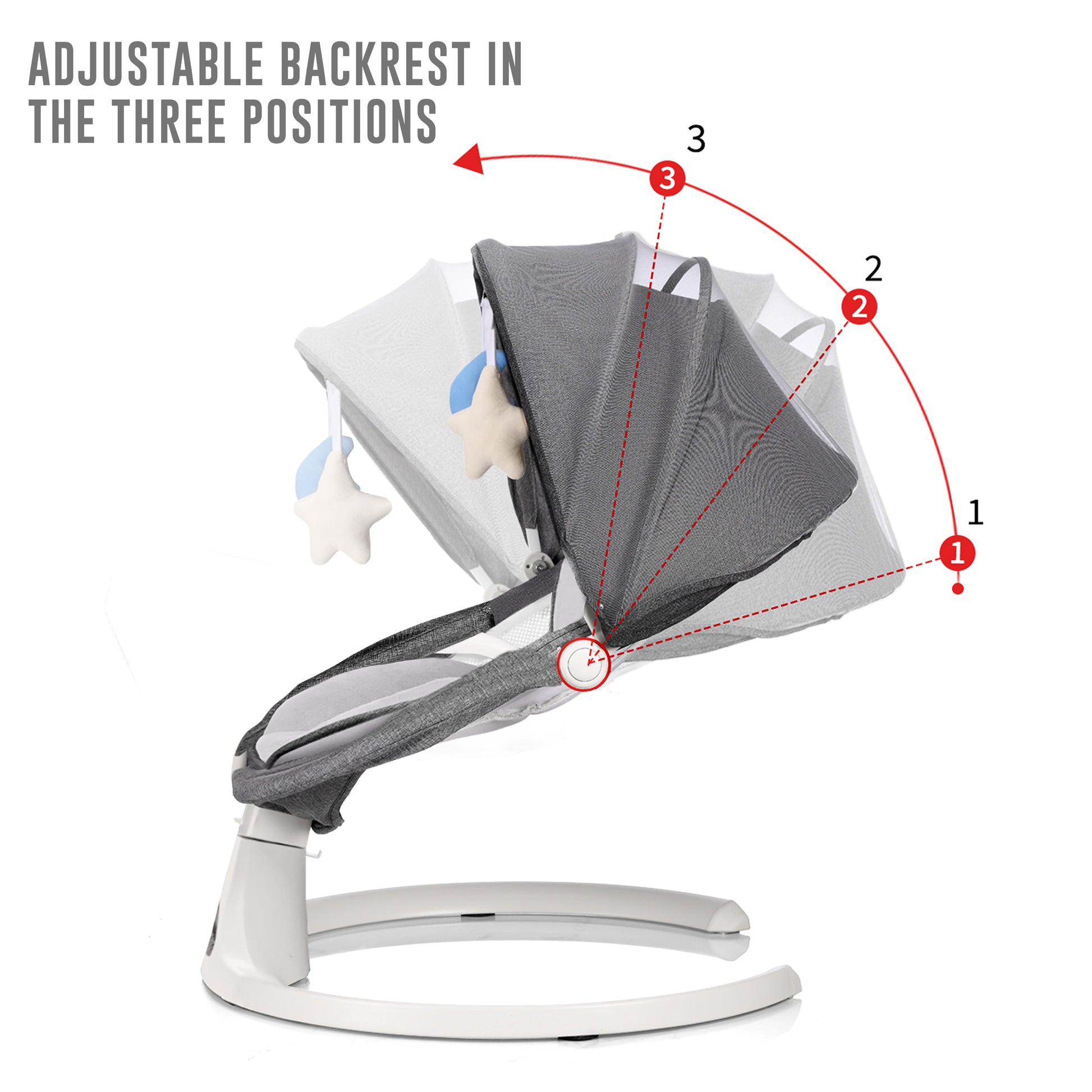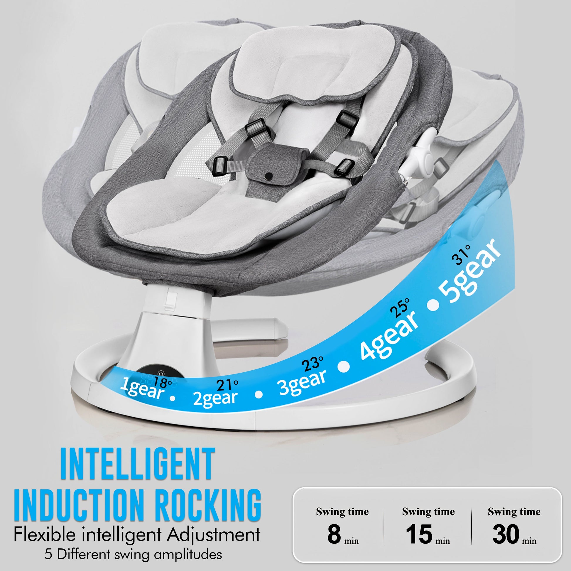 1. 5-Speed Electric Swing: Offers a variety of swing options, allowing you to set the perfect swing range for your baby's needs. Control the pace and let your baby sleep peacefully and grow happily.