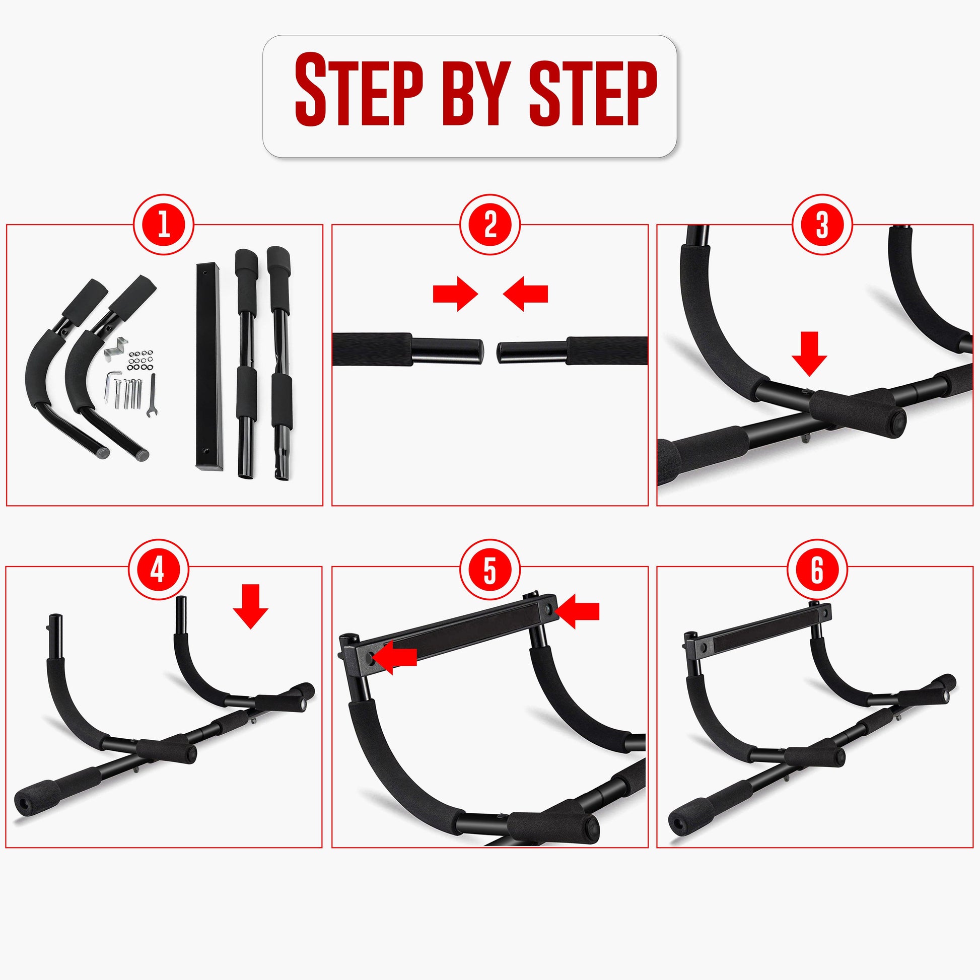 Install your home gym in minutes. This pull-up bar requires no additional tools, screws, or drilling. It fits securely into most standard door frames, making setup quick, easy, and damage-free.
