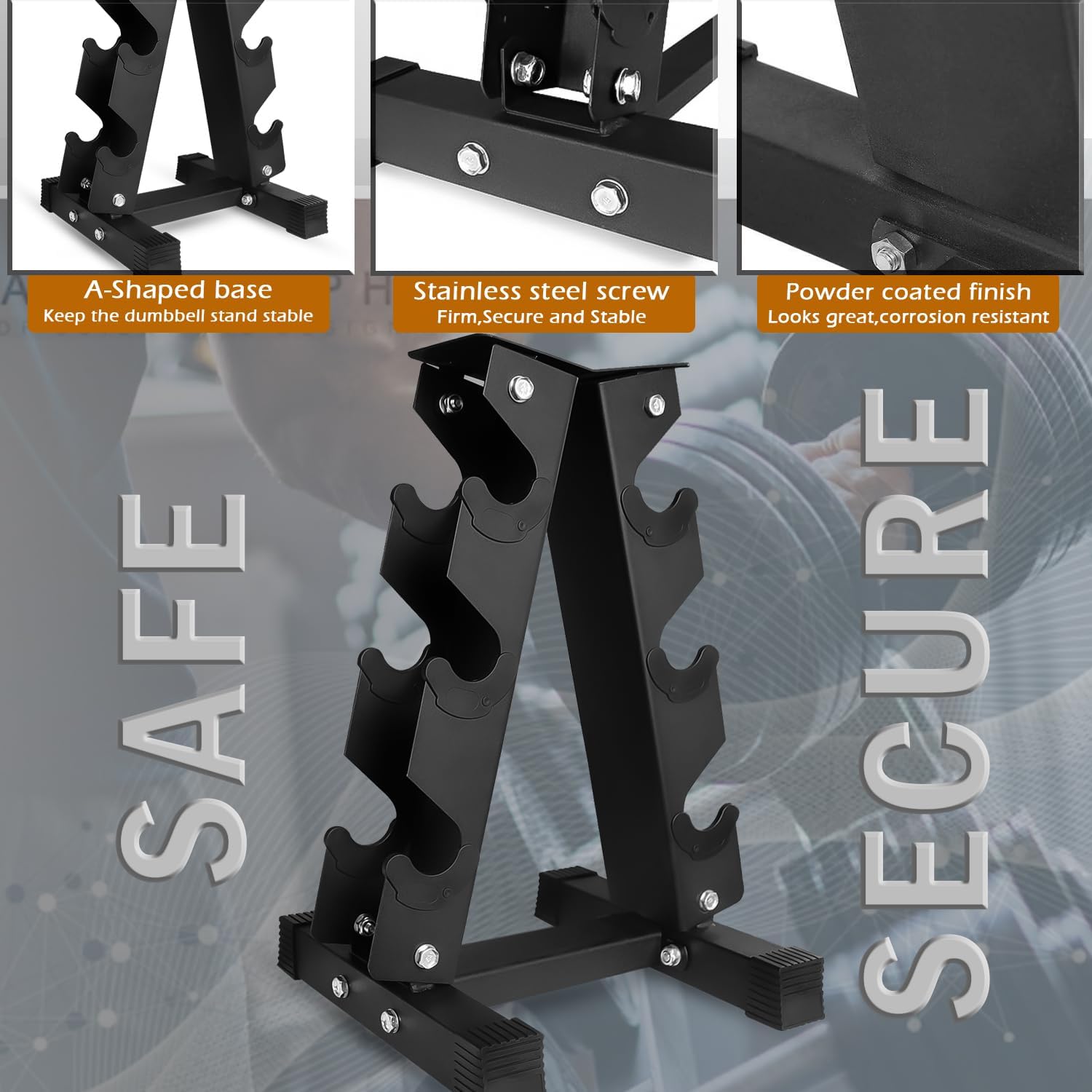Dumbbell Storage Rack 3-Tier Heavy-Duty Steel Stand for Home Gym