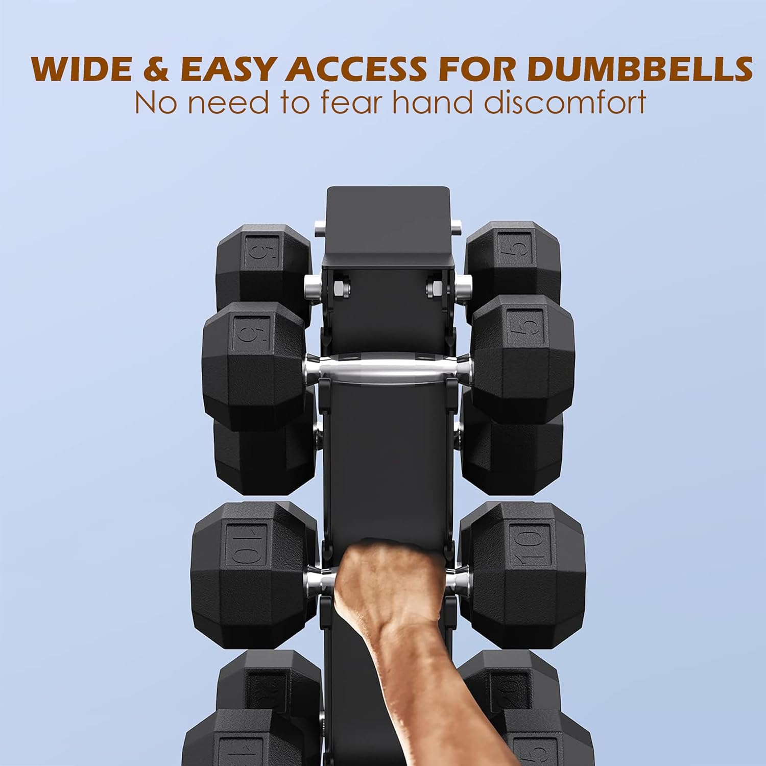 The dumbbell rack features multiple holders that accommodate different sizes of dumbbells. Place your weights on a stand where you can access them quickly while keeping things organized in your home gym.