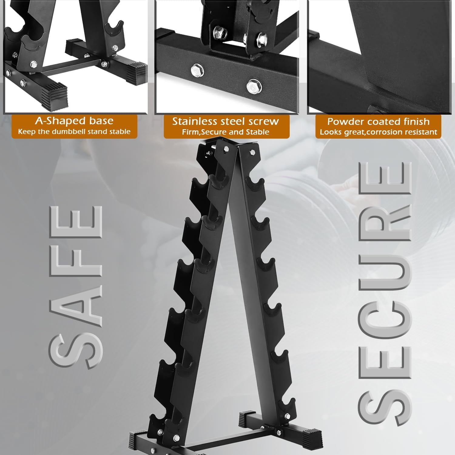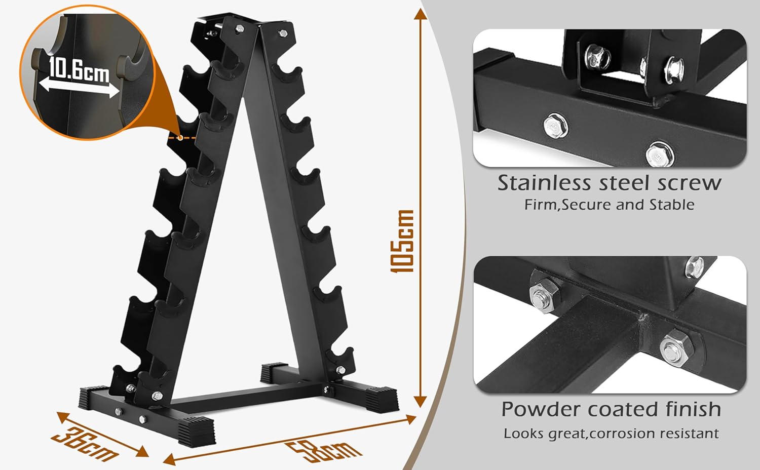 Stackable weights options are neoprene, vinyl and rubber dumbbells. Dumbbell Rack has a load capacity of 200Kg, Dumbbell racks holder is Easy to assemble, heavy-duty square tube steel and very stable with dumbbell racking. A-frame dumbbell rack works perfectly, fits in the closet perfectly, and houses all of your dumbbells. These dumbbell weight racks take very little space and can be stacked anywhere without worrying about rolling as a result of their hex shape.