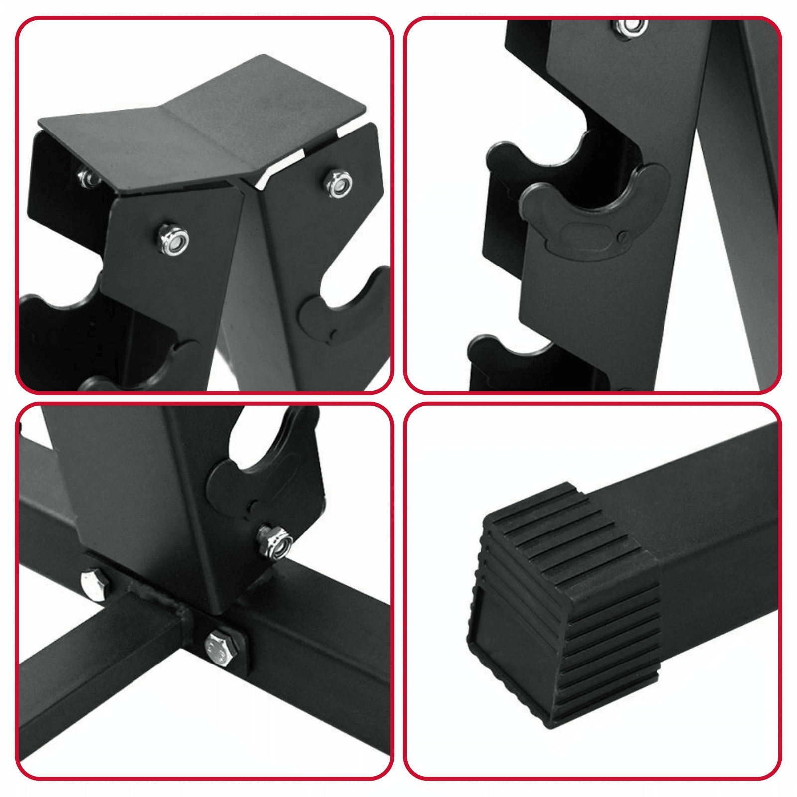 Stackable weights options are neoprene, vinyl, and rubber dumbbells. Dumbbell Rack has a load capacity of 200Kg, Dumbbell rack holder is Easy to assemble, heavy-duty square tube steel, and very stable with dumbbells racked. A-frame dumbbell rack works perfectly, fits in the closet perfectly, and houses all of your dumbbells. These dumbbell weight racks or Dumbell Tree take very little space and can be stacked anywhere without worrying about rolling as a result of their hex shape.Â