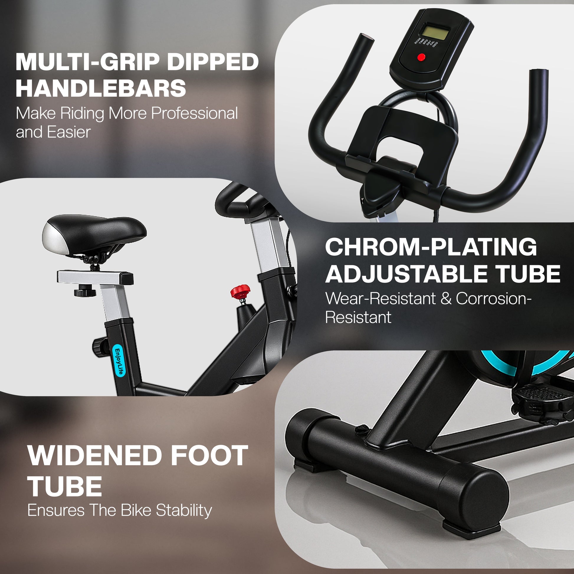 - Enhanced Safety & Grip: Wide caged non-slip pedals with safety toe clips, strong handlebars, and pulse sensors.