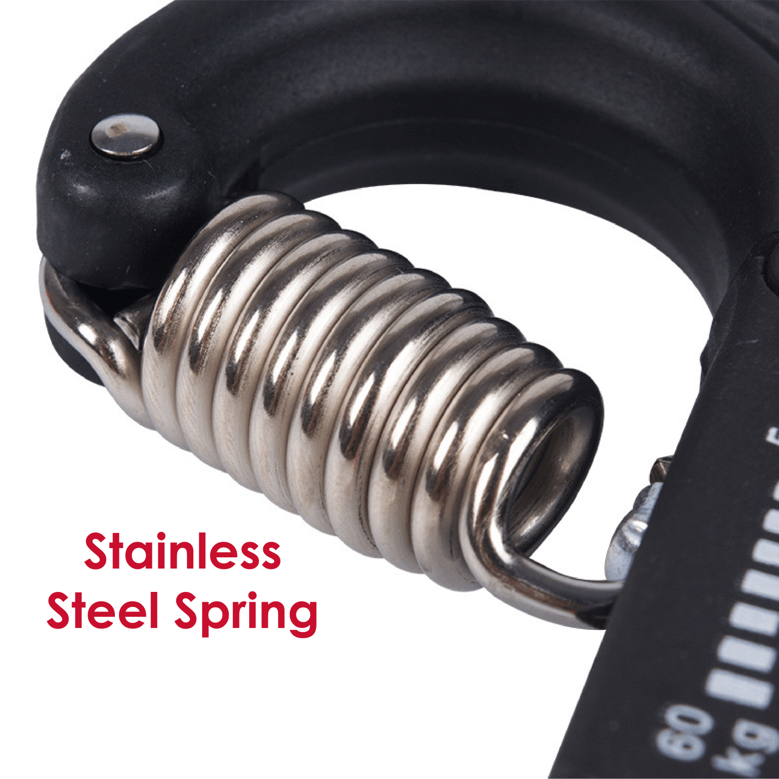 Safe, non-toxic, and durable Comfortable and durable handle and high-quality stainless-steel spring can help the handgrip exercises be adjustable from 5 to 60 kg.