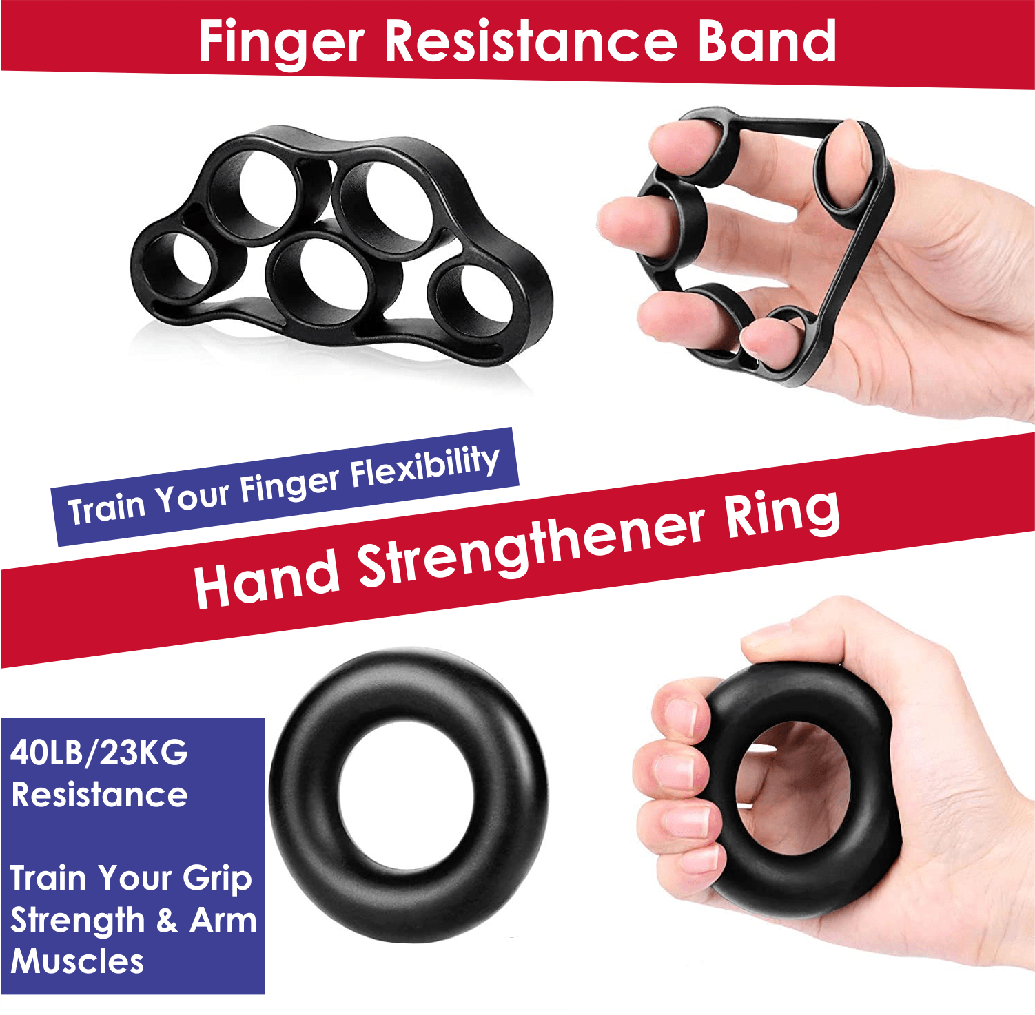 - 18 kg handgrip resistance ring to strengthen the users’ grip strengthener.