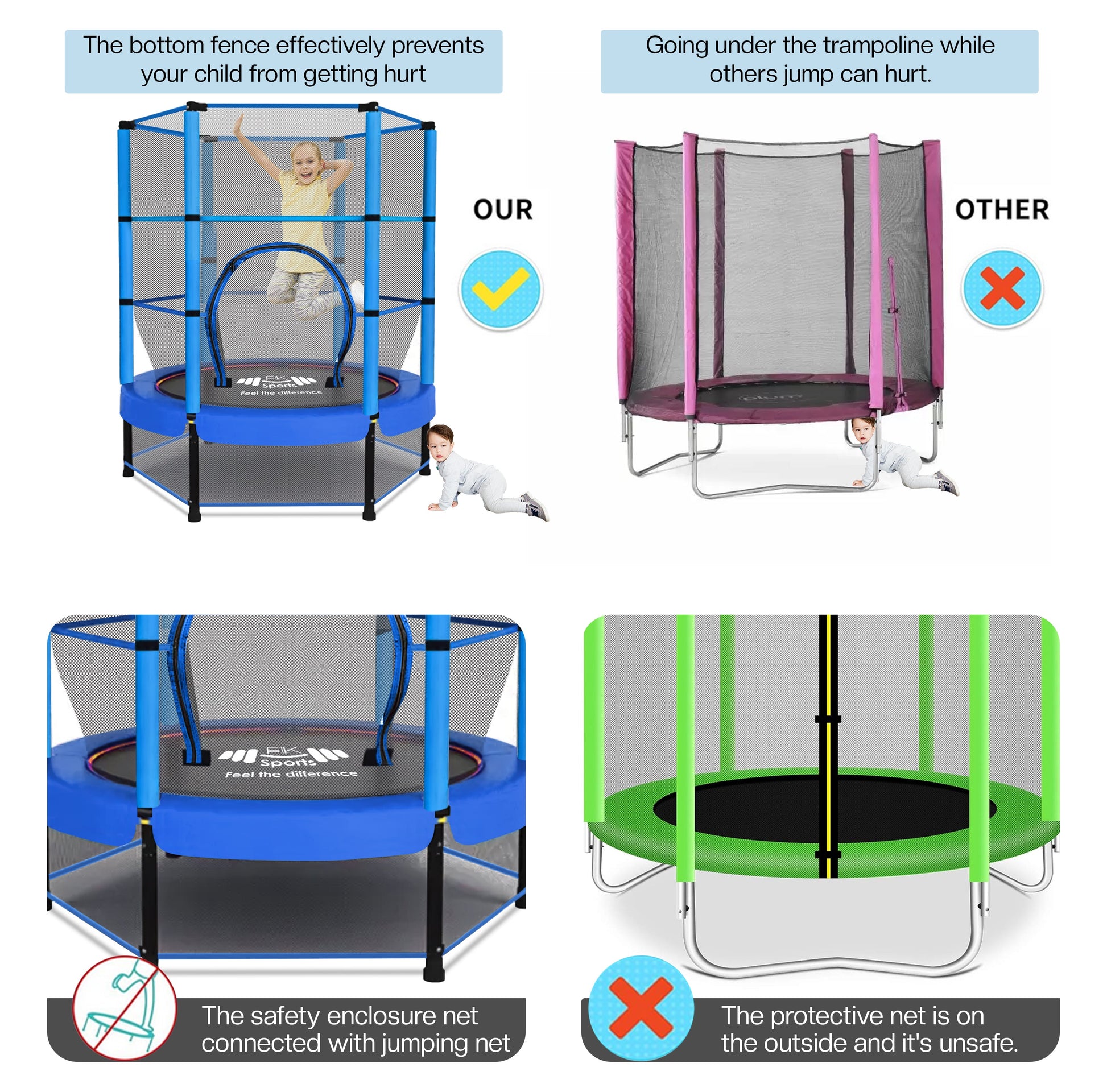55" Kids Trampoline with Safety Enclosure Net – Indoor & Outdoor Mini Rebounder for Toddlers, Ages 1–11, with Bungee System, Anti-Skid Pad & Steel Frame