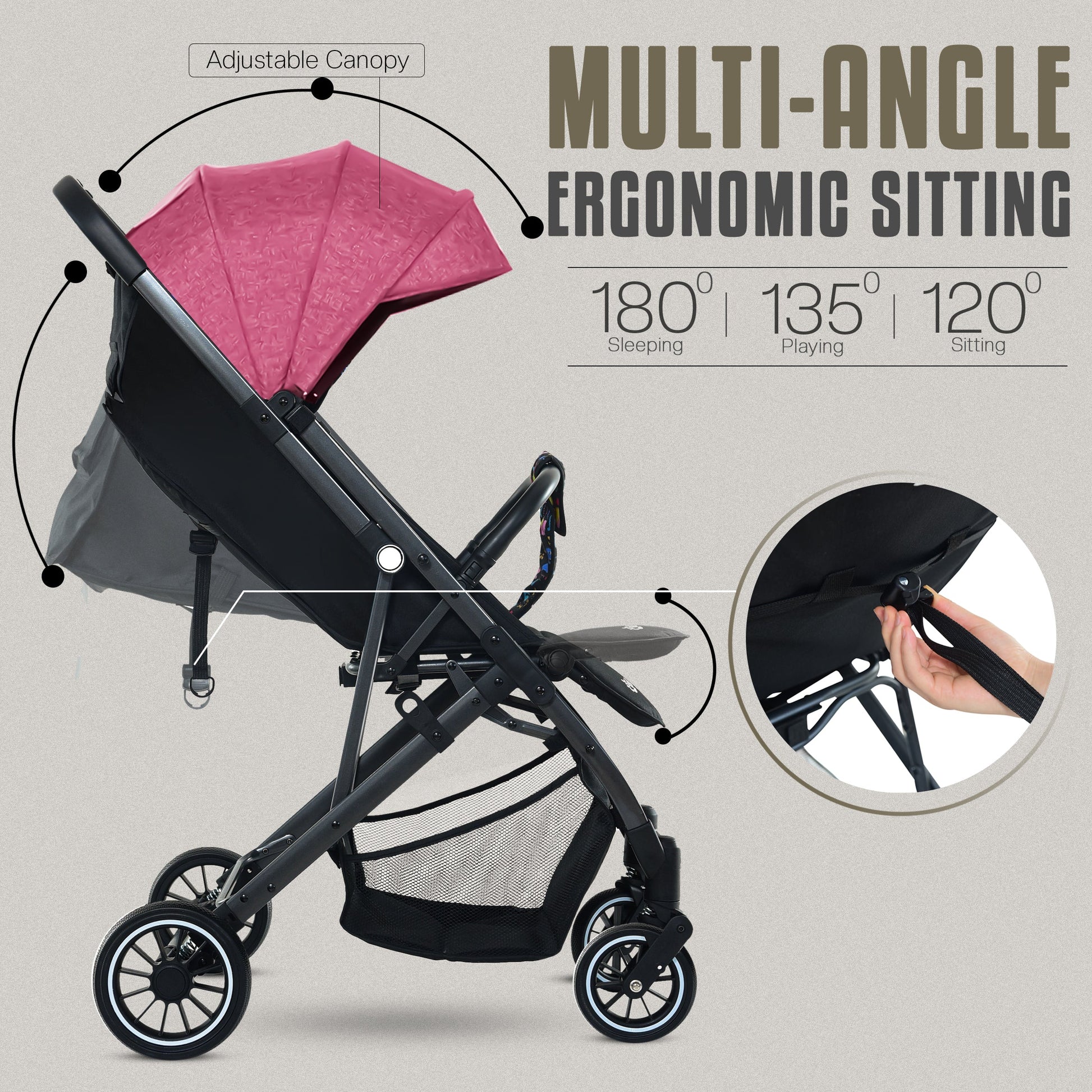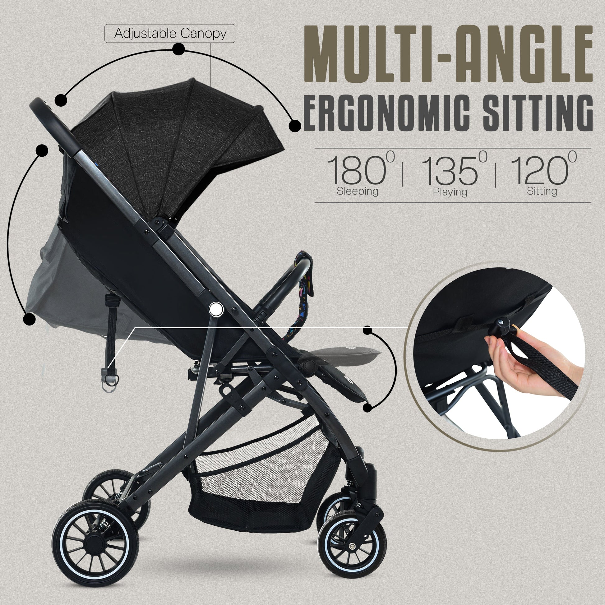 - Adjustable Backrest & Sun Canopy: Ensure your baby's comfort with a reclining backrest that adjusts from 100° to 170°, allowing for upright seating or cozy naps. The extended sun canopy offers excellent sunshade and UV protection, while the detachable shading cloth creates a dark, restful environment.