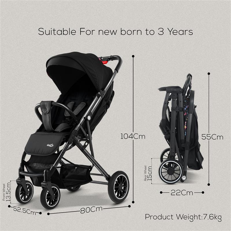 - Lightweight & Portable Design: Effortlessly handle outings with this lightweight pushchair. The one-hand folding system enables quick and compact storage—ideal for travel and daily use. It folds to a suitcase-style size (52.5*22*75 cm) and stands independently, featuring a convenient carry handle for easy transport.
