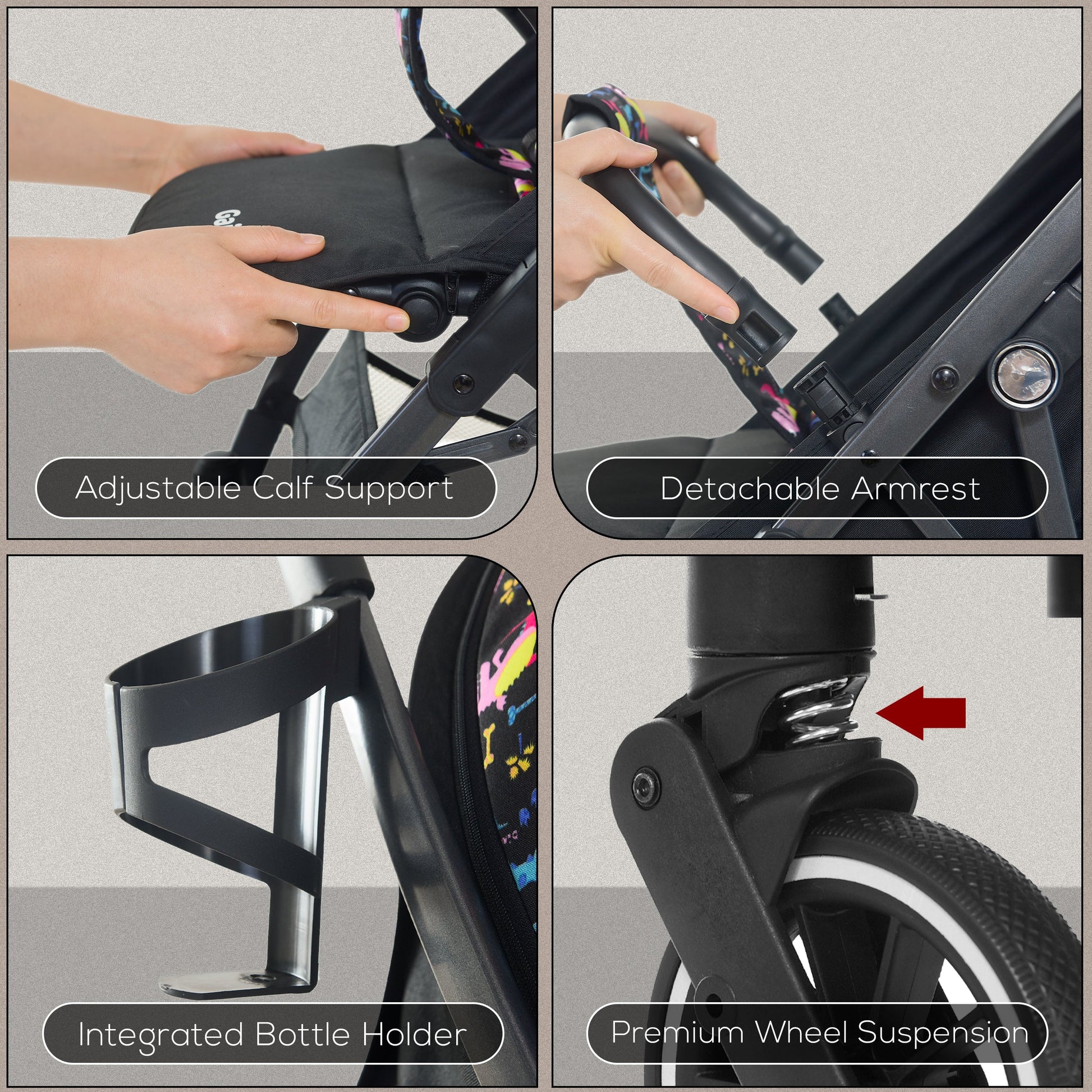 - Parent-Friendly Convenience: Designed with practicality in mind, this baby stroller includes ample storage for bottles, toys, and diaper bags. A peek-a-boo window lets you keep an eye on your little one, and the detachable armrest allows for easy access in and out.