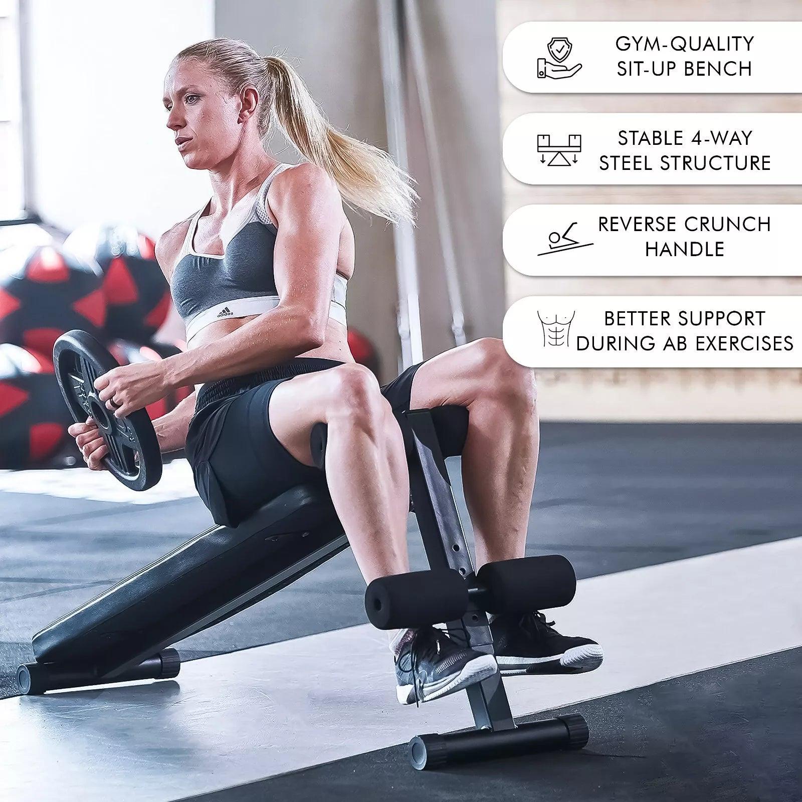Adjustable Sit Up Bench – Core & Abs Workout Bench with Thigh Support for Home Gym