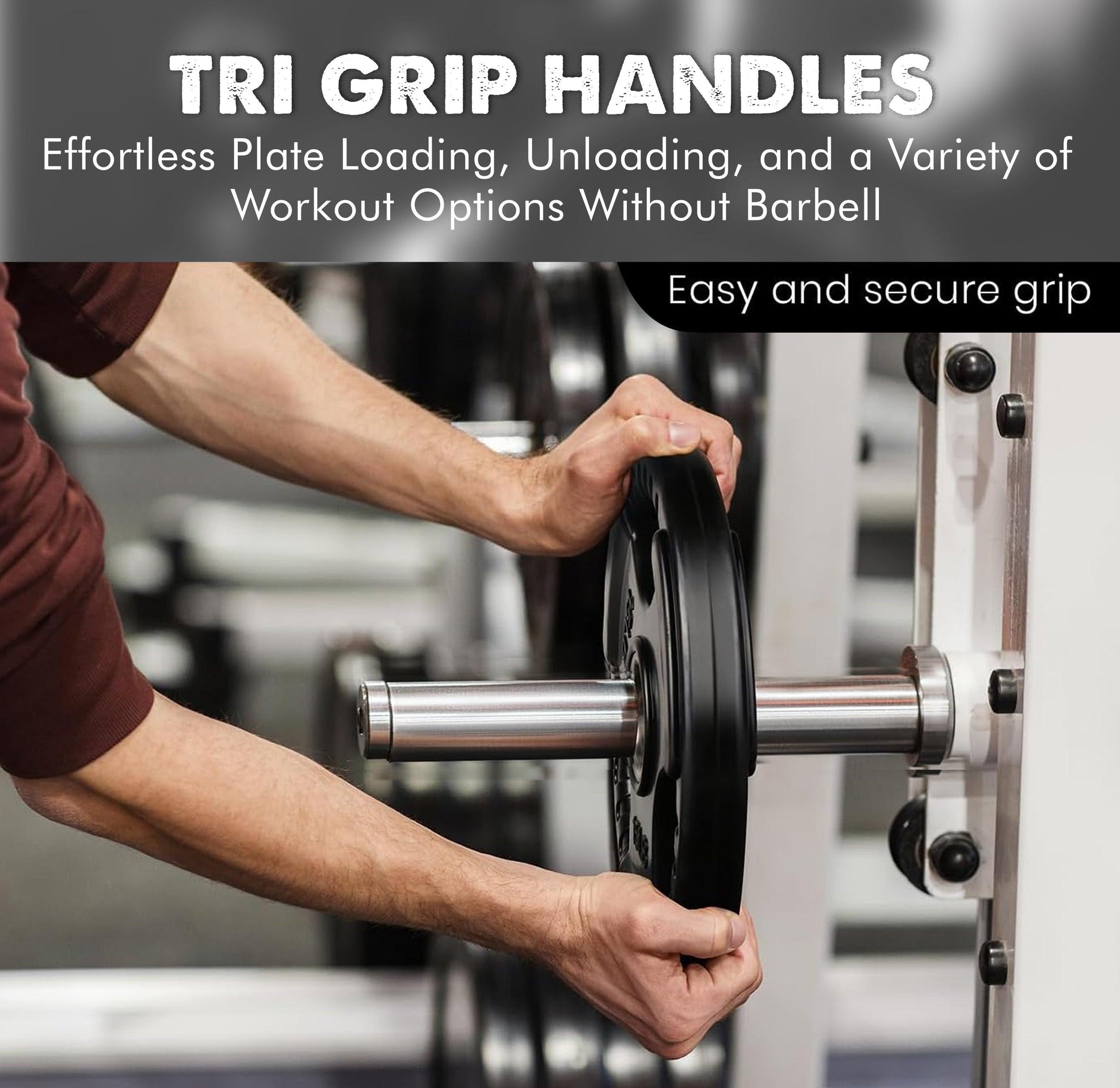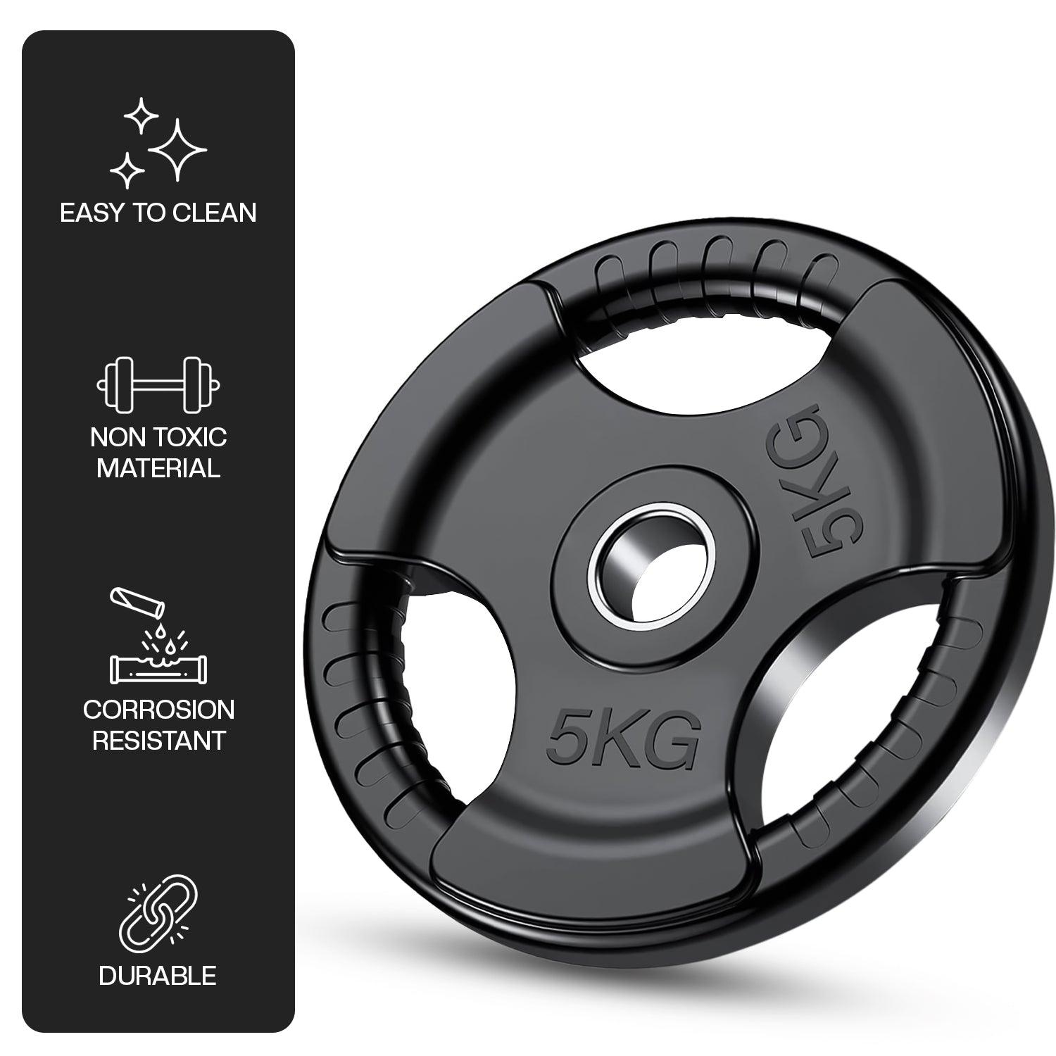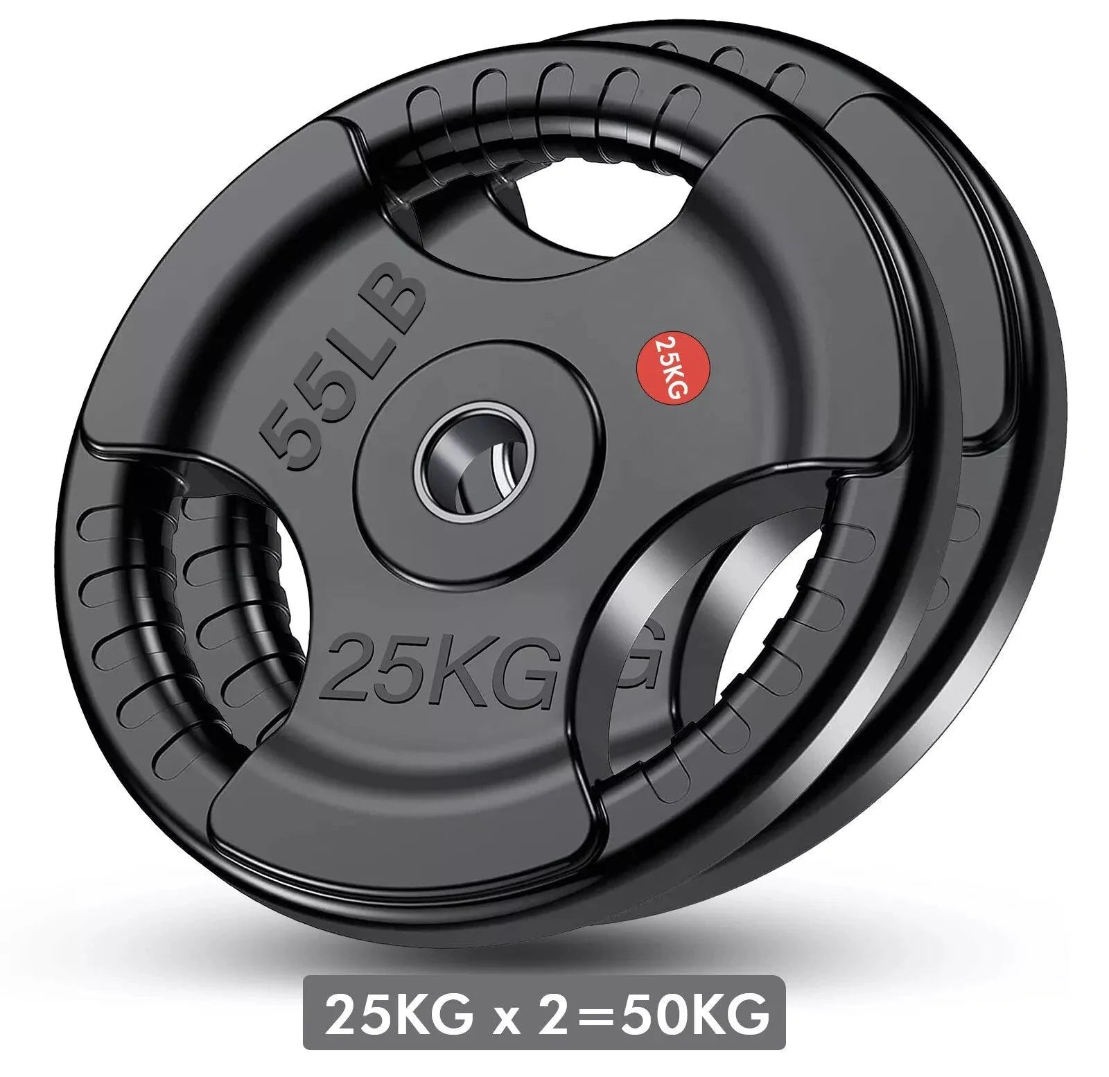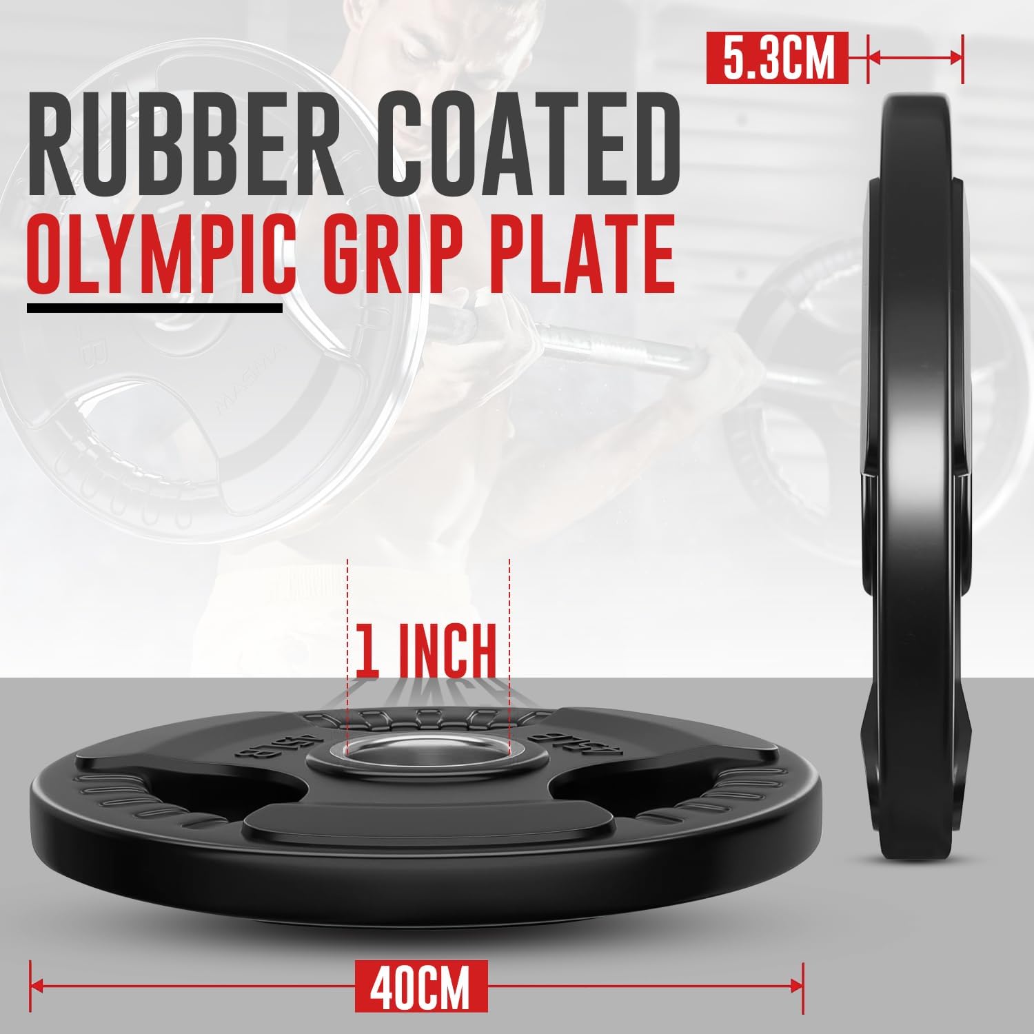 Tri-Grip Cast Iron Weight Plates with Rubber Coating – 1-Inch Standard Barbell Weights (2.5kg to 25kg) – Sold in Pairs for Home & Gym Use