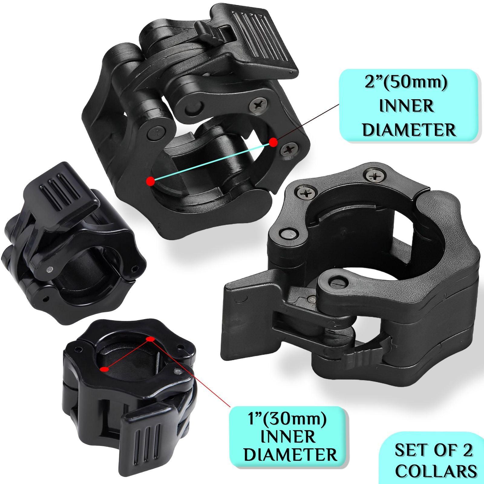 Barbell Clamps are made for all 2" (50mm) Olympic-size Bars and 1" (30mm) Standard size Bars. These Clamps are a simple and fast means of moving plates around. They also help keep plates in place securely and safely when lifting. Made of sturdy and durable material to last for years of use. One of the most significant problems with barbell work can be making adjustments in the barbell's weight.